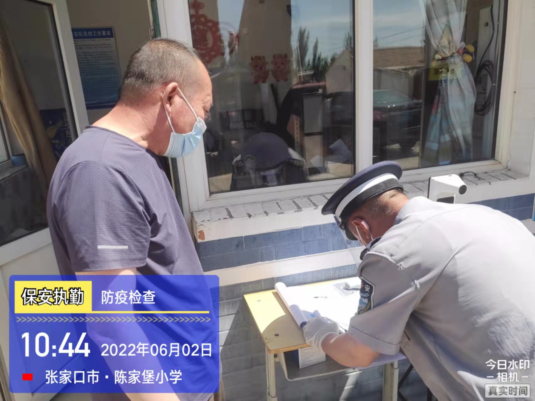 會后,我公司迅速召開“疫情期間學校門衛(wèi)安全防控工作要求”的會議,制定了校園安全防疫規(guī)定:疫情防控期間,校園保安隊員必須穿制服,規(guī)范佩戴“三件套”(防護隔離面罩、N95口罩、一次性PVC手套);進出校園的師生必須測量體溫,外來人員需登記、測溫、掃碼(幸福張家口,呈綠碼)、且持7日內(nèi)核酸陰性檢測結果;保安室需保持干凈整潔,物品擺放有序,勤開窗通風,定期噴灑消毒藥水。為此,公司特成立校園防疫檢查小組,由副經(jīng)理帶隊,協(xié)同主管大隊長對經(jīng)開區(qū)所有中小學校安保崗位進行防疫工作檢查,檢查期間,發(fā)現(xiàn)問題,現(xiàn)場處理,并及時與校方領導溝通,杜絕同樣問題再次出現(xiàn),確保校園防疫安保工作萬無一失,為各校師生鑄就一道安全防線!
